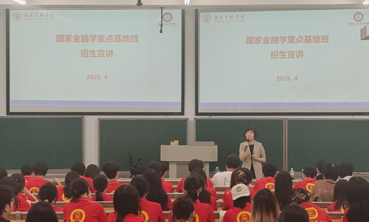 2026年4月15日,“2025级国家金融学重点基地班”招生宣讲会在清远校区成功举办。国家金融学学院院长张玲、副院长王佩出席了宣讲会。