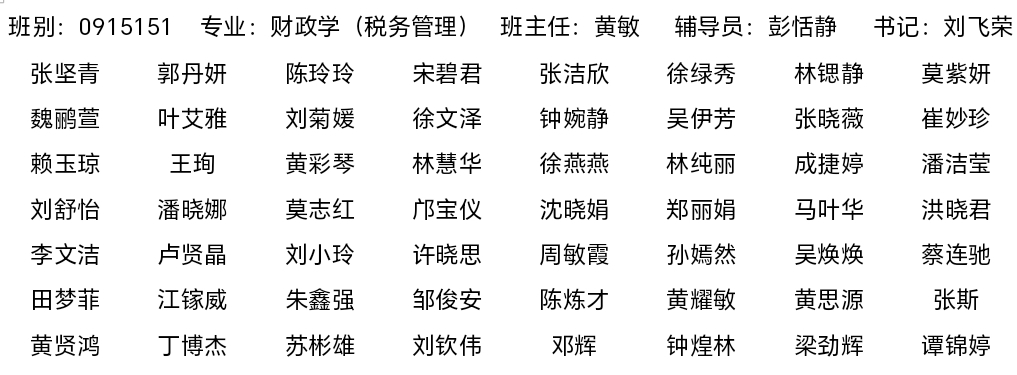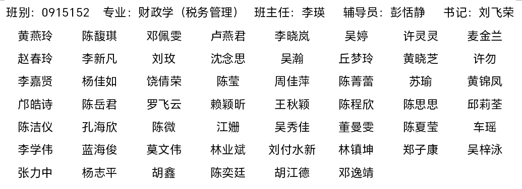 国家金融学学院2009级财政学(税务管理)专业校友名录