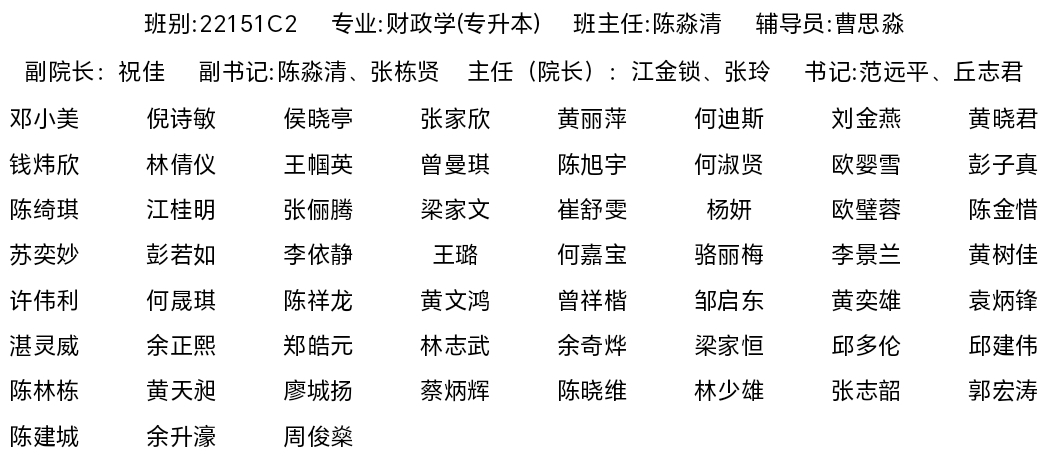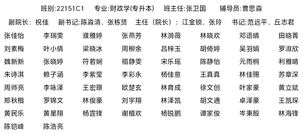 国家金融学学院2022级财政学(专升本)专业校友名录